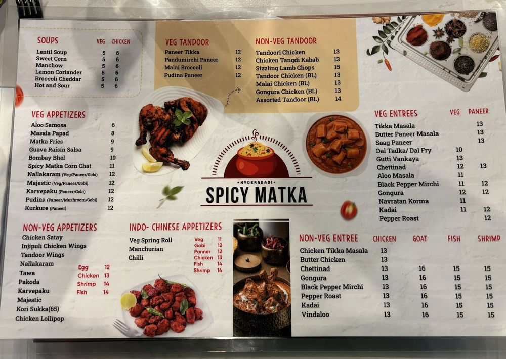 Hyderabadi Spicy Matka, an Indian restaurant located in San Antonio, TX, offers a rich array of flavors and dishes that have left customers raving. From lentil and sweet corn soups to fried and masala tossed momos, the menu is diverse and enticing. The Veg Tandoor section boasts delicacies like Paneer Tikka Tandoor and Malai Broccoli Tandoor, cooked to perfection. Customer reviews highlight the authenticity and flavor of the food, with favorites like goat kheema dosa and nilgiri korma curry receiving high praise. The cozy atmosphere and excellent service add to the dining experience. Whether you're a fan of vegetarian or non-vegetarian options, Hyderabadi Spicy Matka promises a delightful culinary journey that will keep you coming back for more.